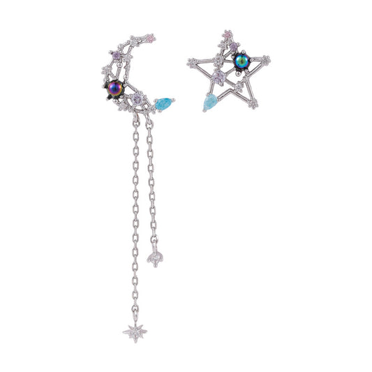 The Moon and Star Asymmetrical Earrings